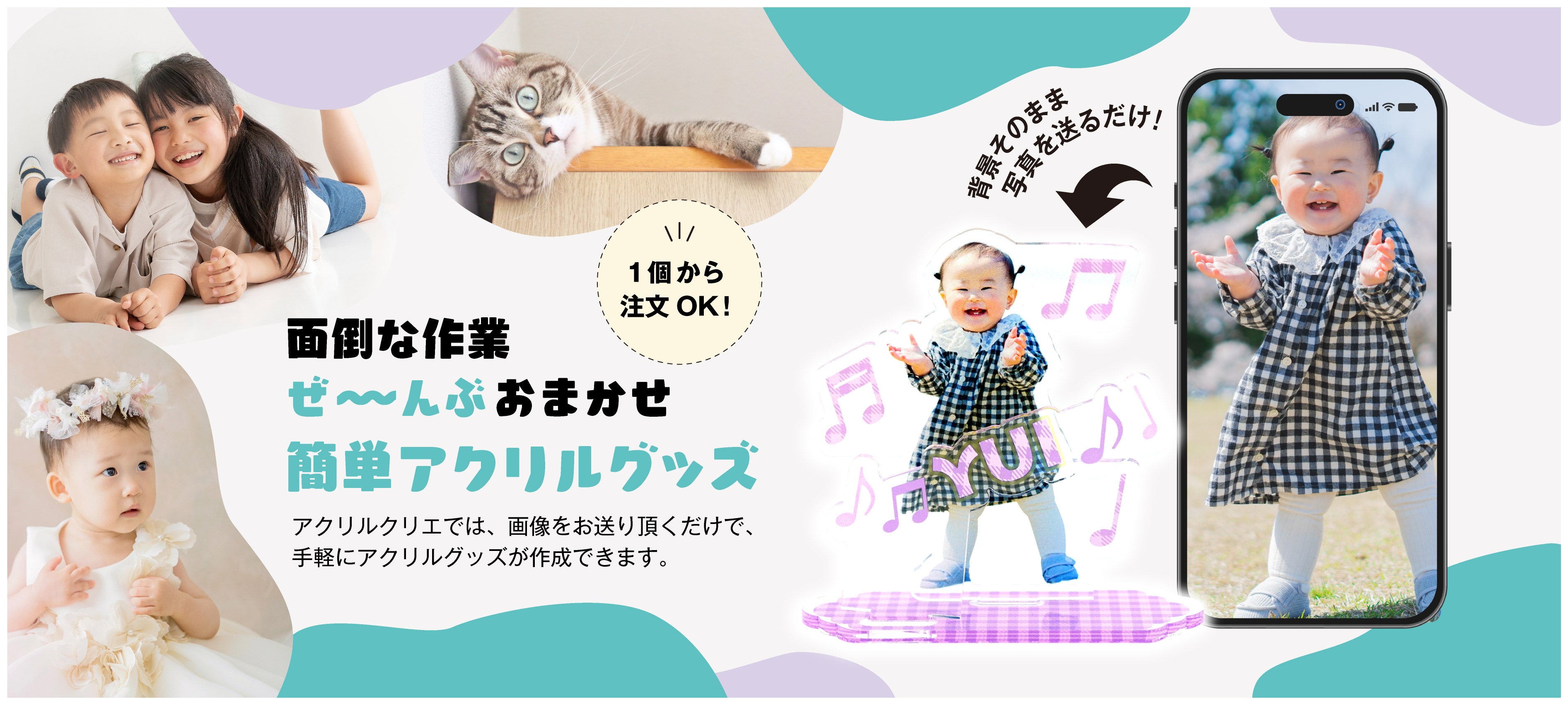 テンプレートからデザインを選び、写真を送るだけで、オリジナルグッズが作成できます。