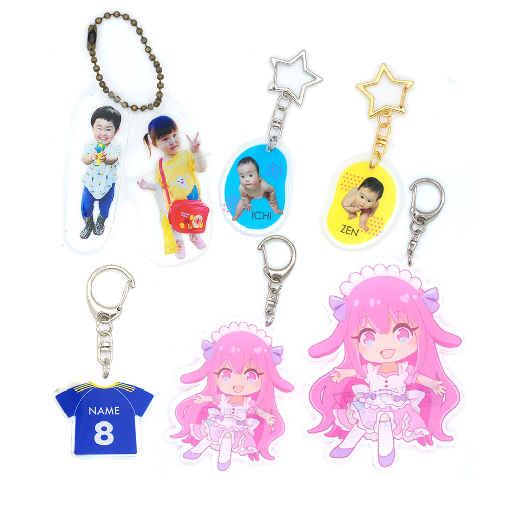 写真、デザイン、イラスト、キャラクターなどのデータをオリジナルグッズにプリントします。デザインの調整費用は全て無料です。